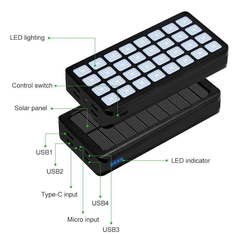 【PSE認証済】 ソーラーバッテリー PS-900 10000/20000/30000/50000mAh 超大容量 軽量 ソーラーチャージャー4台同時充電 2.1A急速充電 32連LED照明ライト搭載 スマホ充電器 モバイル充電器  防災グッズ  防災対策 Black/red,Black,Black/orange,Black/Blue, Black/Green, Black/Yellow全6色 SKU:PC01122024010LS