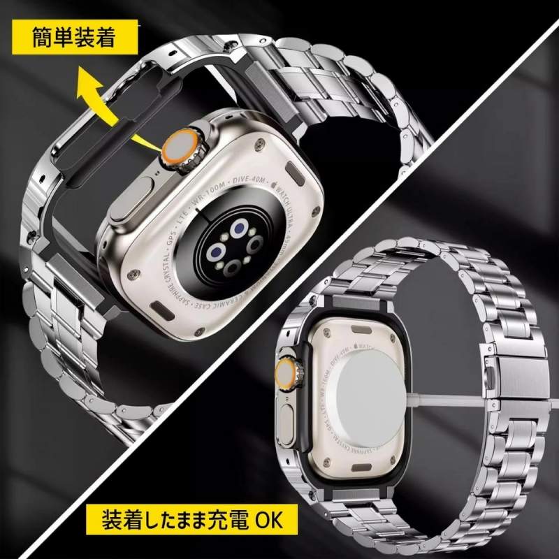 アップルウォッチ ステンレス バンド一体型カバー アップルウォッチ バンド メンズ apple watch 交換バンド applewatch 一体型 ケース バンド apple watch 42mm 44mm 45mm 46mm 49mm 全4色 SKU:PC03312023015LS