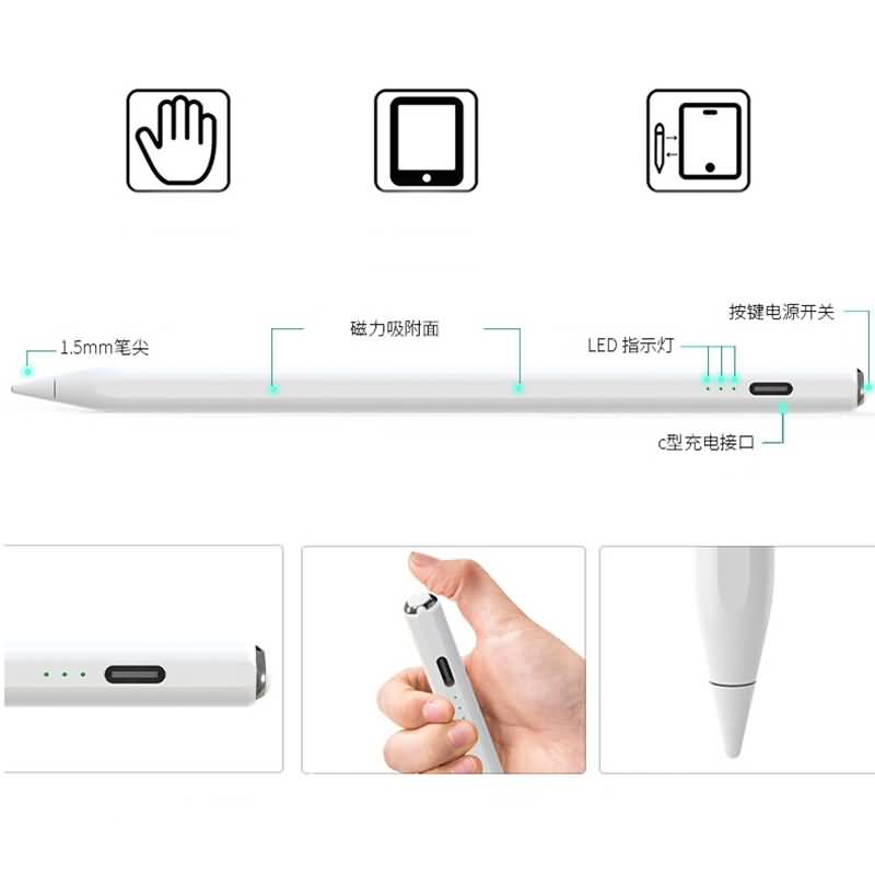 スタイラスペン タッチペン iPad専用 ペンシル iPadペン 残量表示 誤操作防止 傾き検知 2018年以降iPad専用 Type-C充電 磁気吸着 スタイラスペン 極細ペン先 white/yellow/gray/pink/blue 全5色 SKU:IPC04022025012