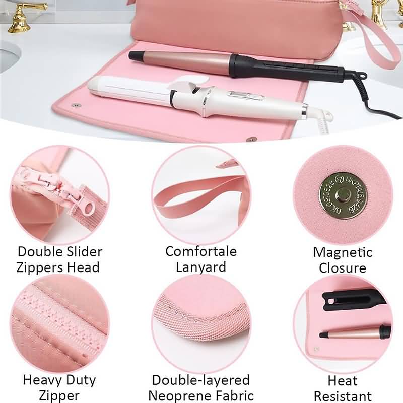 ヘアアイロン 収納 ケース 吊り下げ 耐熱 トラベルポーチ ヘアアイロンケース 吊り下げ収納 Black/Pink/White 全3色 SKU:IPC12252024068