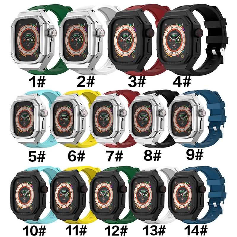 Apple watch ultra 49mm 一体型 バンド メタル+シリコン製アップルウォッチ カバーApple Watch 49mm 腕時計バンド アップル ウォッチ ベルト 全14色 SKU:IPC05102024027