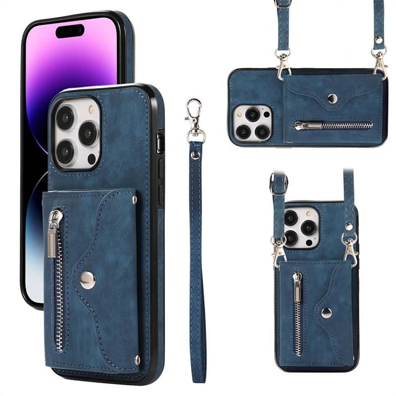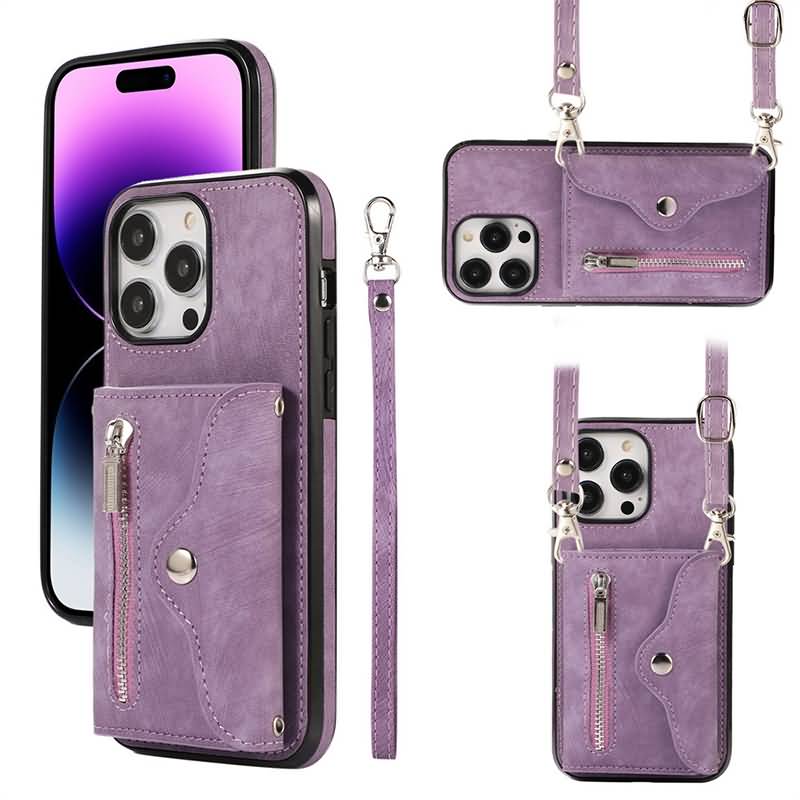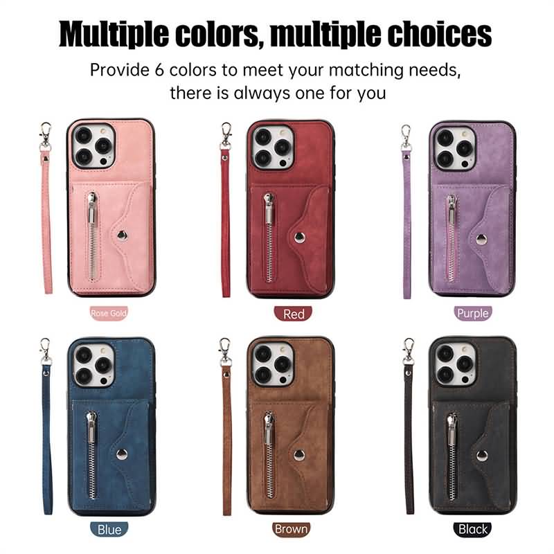 iPhone15 背面型ケース ショルダーストラップ付きケース15Pro PUレザー ケース iPhone15Pro max PU合成革 レザー ケース スマホケースBlack/Blue/Purple/Brown/Red/Rose gold 全6色 SKU:IPC0132024034