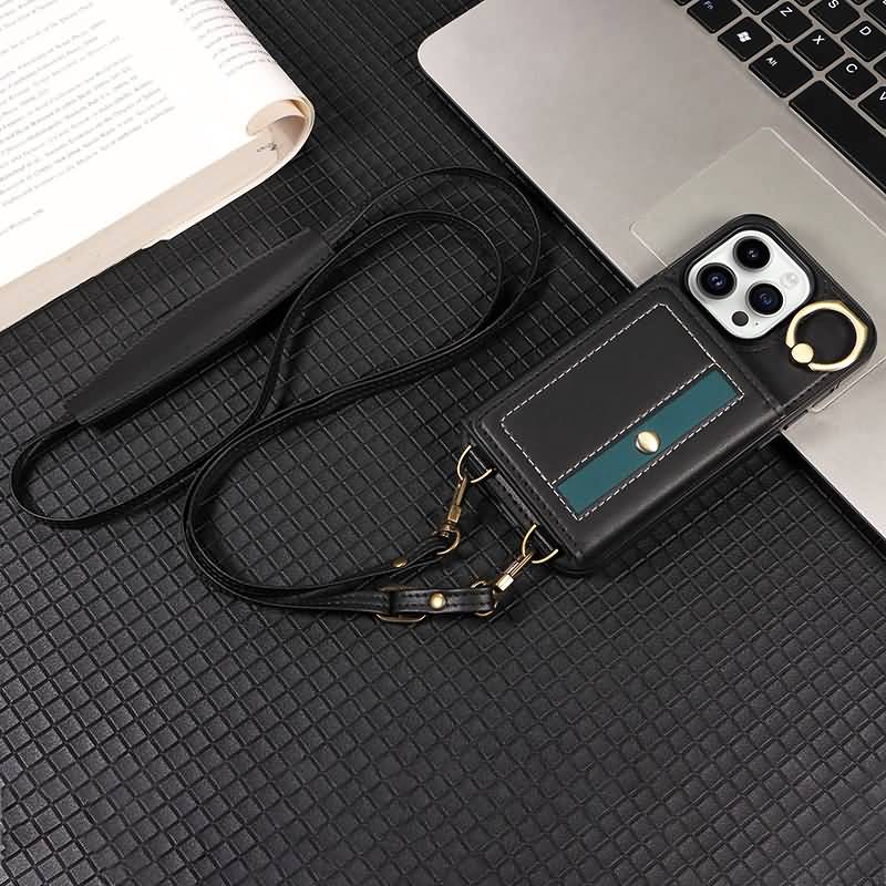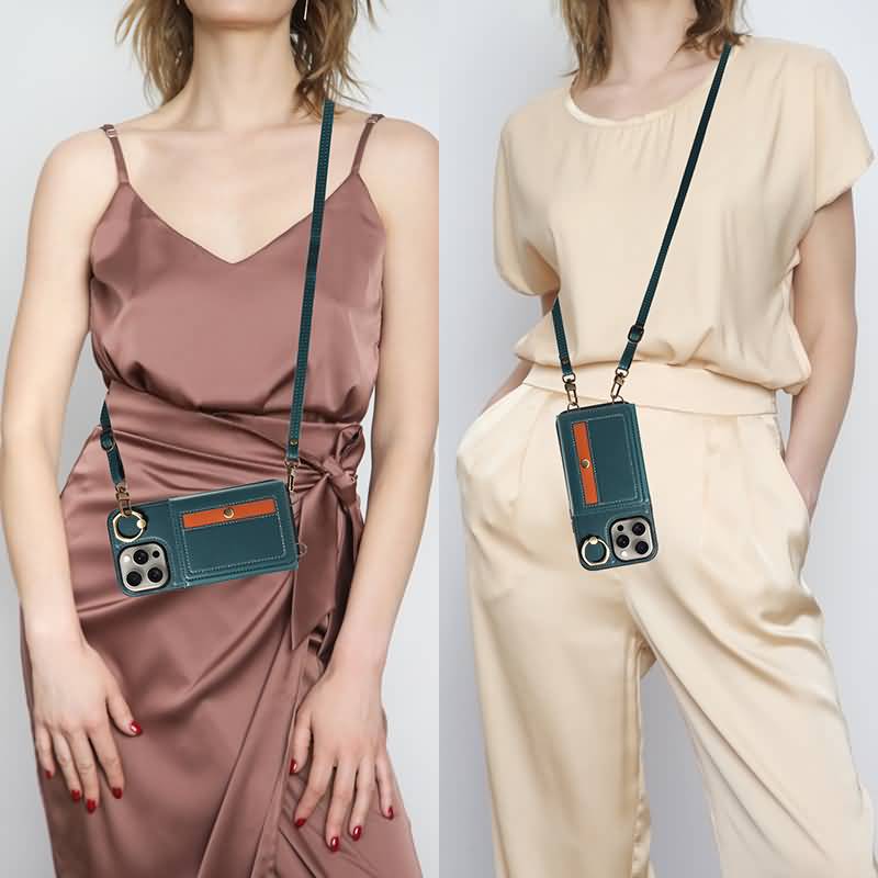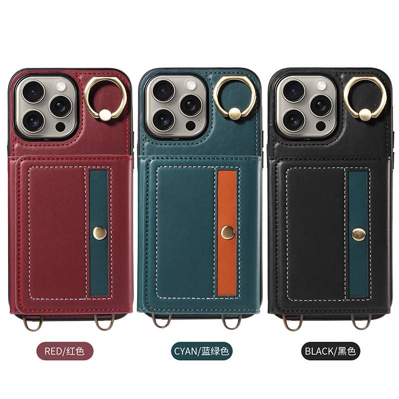 iPhone15 背面型ケース ショルダーストラップ付きケース15Pro PUレザー ケース iPhone15Pro max PU合成革 レザー ケース スマホケース Black/Green/Red 全3色 SKU:IPC0132024029