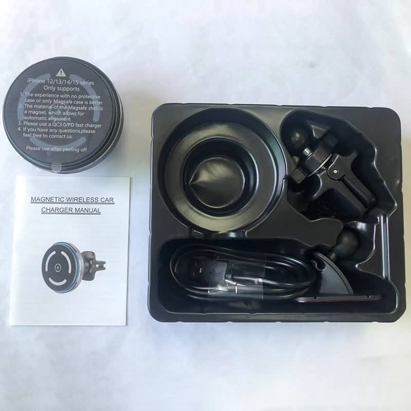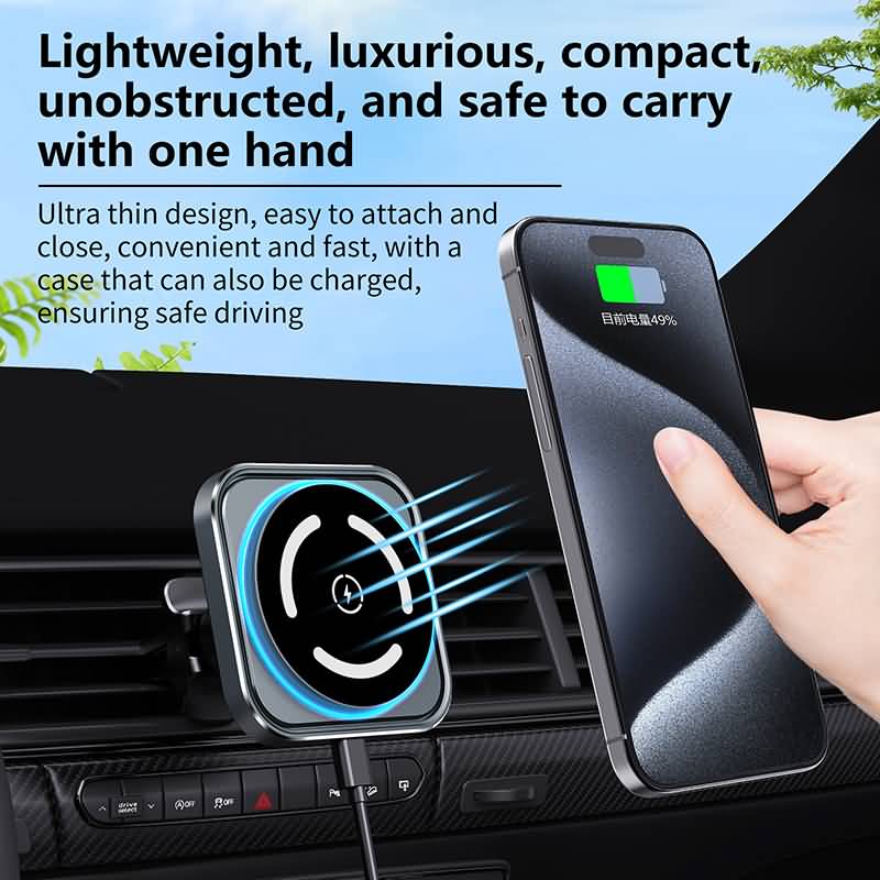 MagSafe対応 強磁力 車載ホルダー 15Wワイヤレス充電器 エアコン吹出口 強磁力 スマホホルダー 車載ホルダー 角度自由調節 車載アクセサリー SKU:IPC09102024039