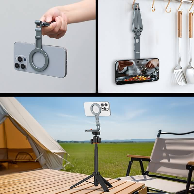 magsafe用 三脚 マウントMG-34 magsafe対応磁気マグネット式マホスタンド携帯ホルダー 雲台 1/4ネジ穴 折り畳み式超強力磁力360度回転 マグネットスマホ三脚 SKU:AC09262025022