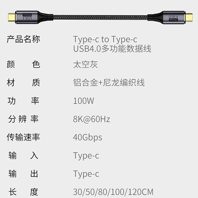Type-C to Type-C快速充電ケーブル USB4.0 PD100W 40Gbps 1/1.2/1.5m ナイロン素材 高耐久 断線防止 充電ケーブル type-c USB ケーブル SKU:IPC08222024022