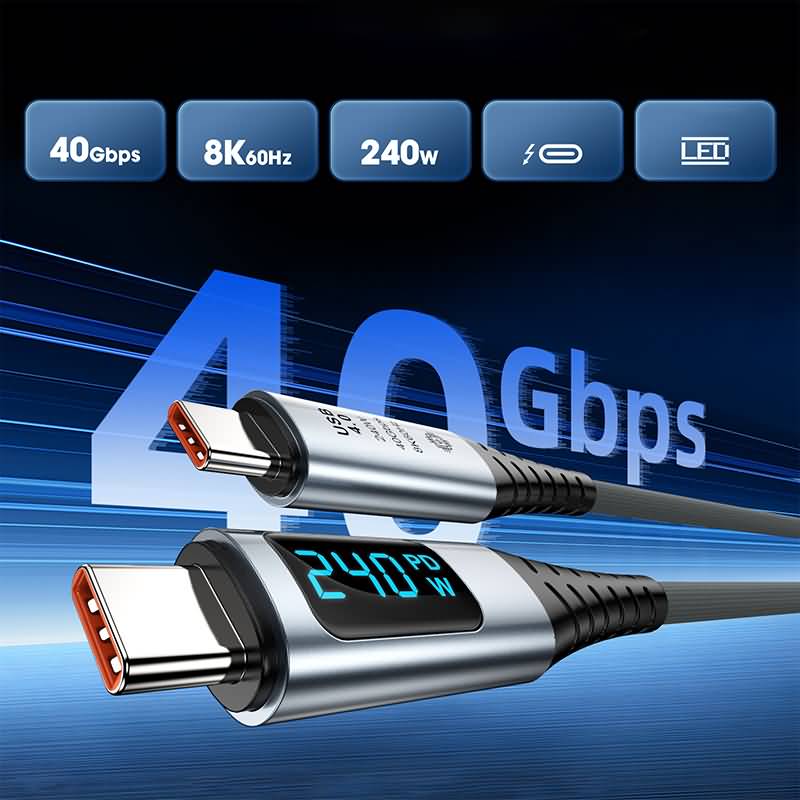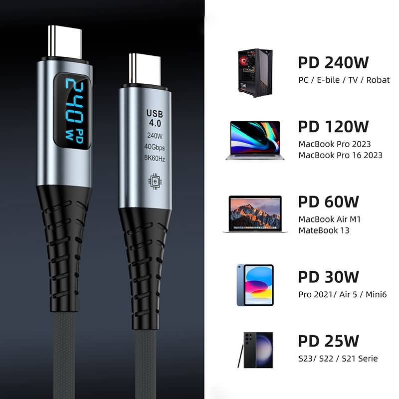 USB4 ケーブル PD240W対応 2m/1.2m/1.5m Type-C 8K 60Hz ケーブル LEDデジタル電源表示 Type-c ケーブル SKU:AC04102026007